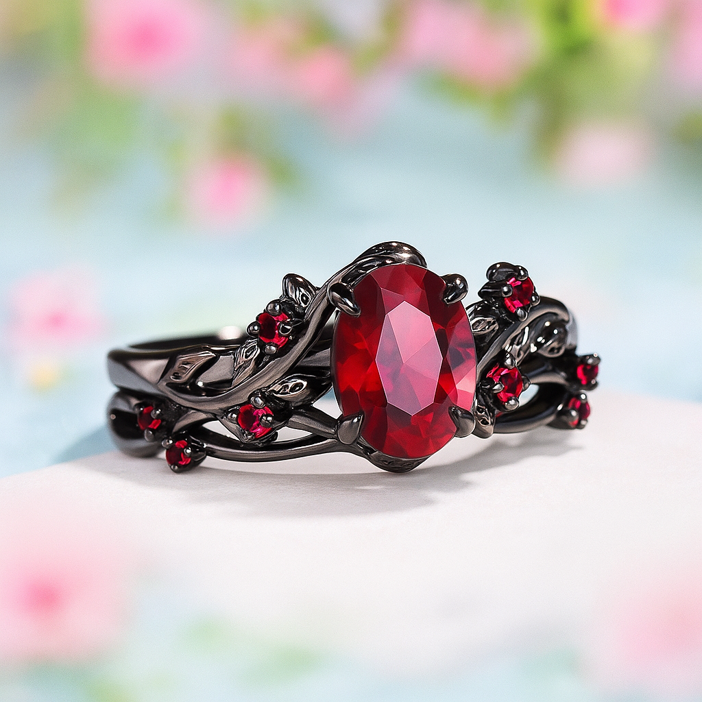 Bold and enduring, the Flaming Promise Ring is crafted from tungsten and accented with deep, fiery red tones that symbolize passion and strength. Its mysterious design embodies a love that shines brightest through the darkest nights.